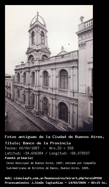 Banco de la Provincia - Fecha: 00/00/1887 - [Id: 558] Notar que ya no tiene montadas las 16 estatuas (8 fueron a la Recoleta, 4 a la Pirámide de mayo y 4 se ignora su paradero). Fuente:Censo Municipal de Buenos Aires, 1887, editado por Compañía Sud-Americana de Billetes de Banco, Buenos Aires, 1889.