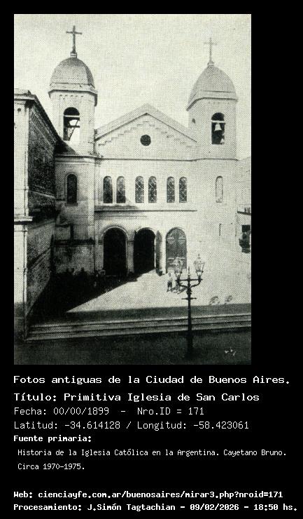 Primitiva Iglesia de San Carlos - 00/00/1899 - [171] - Orden: 20 La primitiva Iglesia de San Carlos que daba a la calle (hoy) Quintino Bocayuva en el barrio de Almagro.