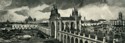 Plaza de mayo y alrededores - 00/00/1850 - [Id: 189] Fuente:Historia de la Iglesia Católica en la Argentina. Cayetano Bruno. Circa 1970-1975. Palabras claves:Recova cabildo |