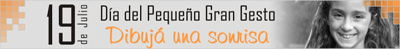 El próximo 19 de julio será el "Día del Pequeño Gran Gesto", una invitación a realizar una o muchas acciones especiales, a cargo de cada uno de nosotros, individualmente o en grupo. La consigna será pensar y hacer un acto solidario concreto, cualquiera sea éste y el lugar o el medio elegido. Miren a su alrededor y descubran a quién van a dibujarle una sonrisa el 19 de julio. Los invitamos a visitar www.dibujaunasonrisa.org para que puedan formar parte de esta maravillosa iniciativa.