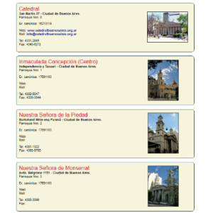 Arquidiócesis de Buenos Aires [ Todas las Parroquias e Iglesias ] - [ Mapa con las ubicaciones de Parroquias e Iglesias ] En estas páginas podrá encontrar el listado total de parroquias e iglesias de la Arquidiócesis de Buenos Aires con sus datos principales. También encontrará enlaces al Google Maps que le permitirá ubicar su parroquia, o el grupo de parroquias de su decanato.