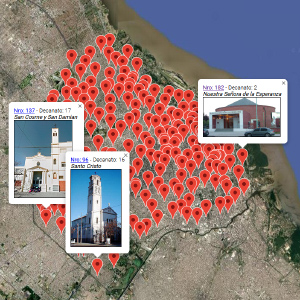 ![]() Este buscador surgió motivado por el programa de "Historia de Parroquias de la Arquidiócesis de Buenos Aires" que dirige el Padre Ernesto Salvia. Viendo la utilidad de poder contar con una herramienta que pudiera mostrar gráfica y geográficamente las fotos de las parroquias, armamos esta página web. Comenzamos a incluir las primeras fotos a mediados de octubre del 2007 y para el día 7 de julio del 2009 ya teníamos publicadas las fotos de 134 de las 186 parroquias, y de 48 de las 50 iglesias (que no son parroquias). Sobre los 236 templos que buscamos fotografiar ya teníamos en ese momento un total 182 grupos de fotos (se encuentraba relevado fotográficamente el 77% de todas las iglesias las listadas en la Guía Arquidiocesana del 2007 y agregados). Durante un tiempo largo no pudimos incluir más fotos. Ahora, con las herramientas de Google Street, pudimos completar las fotos que nos faltaban en junio de 2019. Ahora solo falta actualizar todos los datos, tarea nada sencilla. Agradecemos el apoyo de todos, y en especial los mails recibidos con agradecimientos, consejos y sugerencias. Y a todos los que nos ayudaron enviando sus fotos (ver responsables de las fotos). Si lo desean, pueden seguir enviándonos las fotos de su iglesia (hoy esto es más facil de hacer gracias a las cámaras digitales ¡y todos pueden colaborar!) a la dirección jst@cienciayfe.com.ar (J. Simón Tagtachian). ¡Esperamos que esta web sea de utilidad para todos!