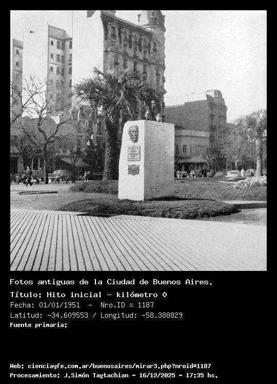 Hito inicial - kilómetro 0 - 01/01/1951 - [1187] - Orden: 55 Desde este punto parten y se miden todos los kilometrajes de las rutas nacionales.