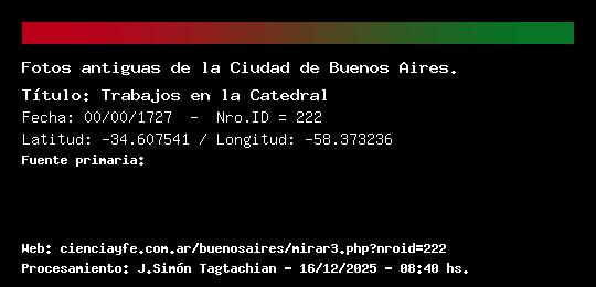 Trabajos en la Catedral - 00/00/1727 - [222] - Orden: 2 El Arq. Andrés Blanqui se hizo cargo de los trabajos de la Catedral. No sólo modificó el proyecto existente sino que hizo demoler todo el primer cuerpo de la fachada. Dio mayor altura a las cinco puertas principales, en particular a las tres centrales. Fuente: TEH-525 p33.