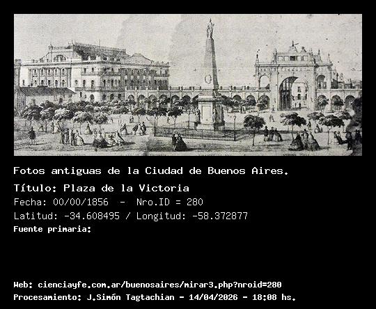 Plaza de la Victoria - 00/00/1856 - [280] - Orden: 12 Plaza de la Victoria, Teatro Colón, Pirámide de Mayo y Recova vieja.