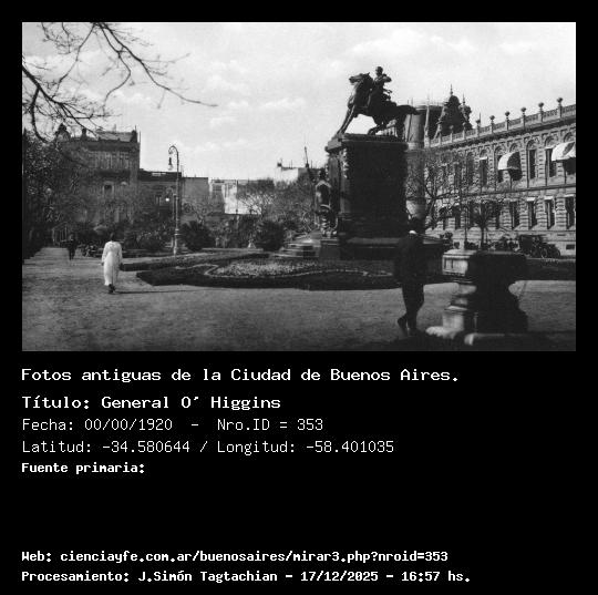 General O' Higgins - 00/00/1920 - [353] - Orden: 29 Hoy el monumento está en Palermo, pero la foto parece mostrarlo frente al Palacio Pizzurno. Hay que averiguar si fue trasladado.