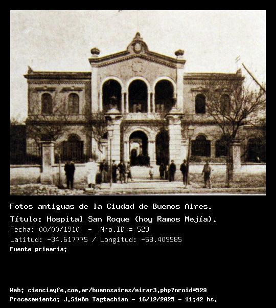 Hospital San Roque (hoy Ramos Mejía). - 00/00/1910 - [529] - Orden: 24 Hoy es el Hospital Ramos Mejía (Urquiza 609) Antiguo lazareto y Hospital de San Roque, inaugurado a causa de la epidemia de fiebre amarilla de la ciudad de Buenos Aires en 1871 Confrontar: www.delhospital.com/ Falta confirmar la fotografia y si es el mismo hospital.
