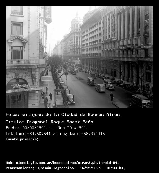 Diagonal Roque Sáenz Peña - 00/00/1941 - [941] - Orden: 50 Vista de la Diagonal desde Plaza de Mayo hacia el NO. Se ve al fondo al Obelisco.