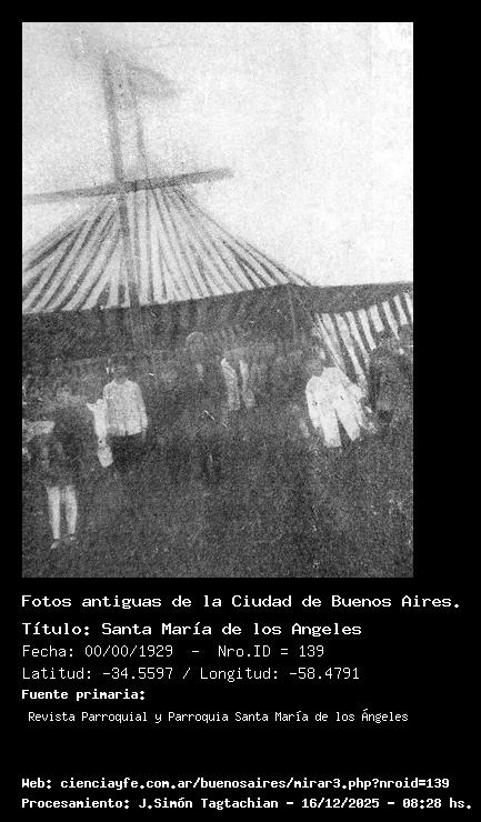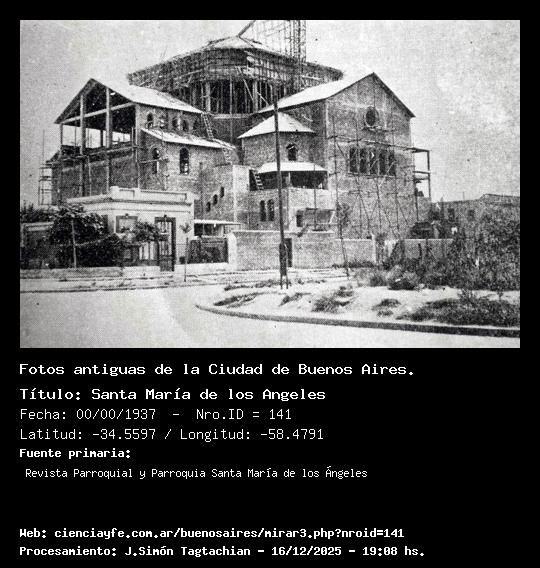 Santa María de los Angeles - 00/00/1930 - [140] - Orden: 4 Nueva iglesia parroquial emplazada en la calle Guayra 3831 ( hoy Tamborini). Su bendición e inauguración tuvo lugar el 6 de abril de 1930 , cuya ceremona estuvo a cargo de Mons. Fo