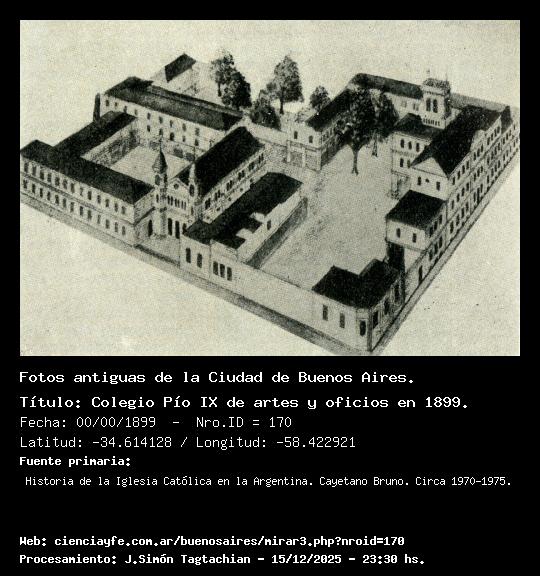 Colegio Pío IX de artes y oficios en 1899. - 00/00/1899 - [170] - Orden: 19 En el medio, el viejo templo, que daba sobre la calle de Artes y Oficios, hoy Quintino Bocayuva.