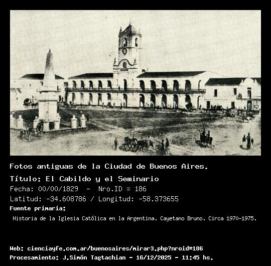 El Cabildo y el Seminario - 00/00/1829 - [186] - Orden: 8 Los edificios del Cabildo y del antiguo Seminario en la vieja Plaza de Mayo. También se observa la Pirámide. Dibujo de Carlos Pellegrini.