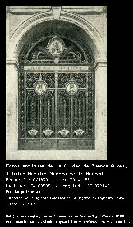Nuestra Señora de la Merced - 00/00/1970 - [188] - Orden: 36 Artística reja de hierro de la puerta principal de la basílica de la Merced, forjada en Siena (Italia). Desde el atrio de la Merced dirigió Liniers la reconquista de Buenos Aires.