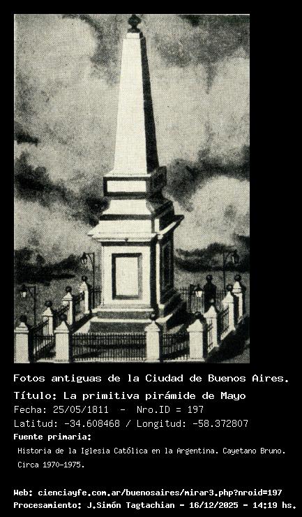 La primitiva pirámide de Mayo - 25/05/1811 - [197] - Orden: 6 La primitiva pirámide, inaugurada el 25 de mayo de 1810, obra del alarife y maestre mayor don Francisco Cañete. Estaba ubicada en la primitiva plaza de la Victoria.