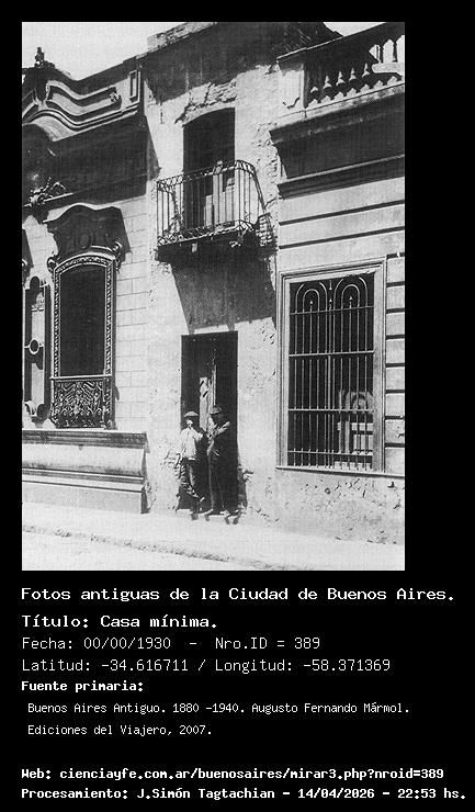 Casa mínima. - 00/00/1930 - [389] - Orden: 30 Casa Mínima en el Pasaje San Lorenzo 380. Tiene un frende de 2.30 metros (1930, AGN). Conocida también como la Casa del Liberto.
