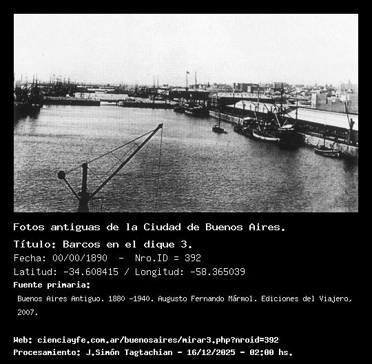 Barcos en el dique 3. - 00/00/1890 - [392] - Orden: 5 La foto parece haber sido tomada en el dique 3, mirando al sur (1890, AGN). Los primeros barcos en las dársenas con el puerto recién inaugurado.