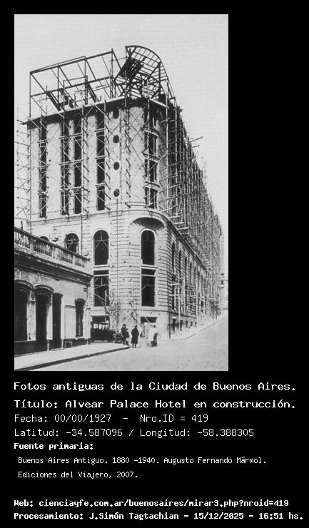 Alvear Palace Hotel en construcción. - 00/00/1927 - [419] - Orden: 25 El hotel ocupa el predio donde se hallaba el palacio Dose.