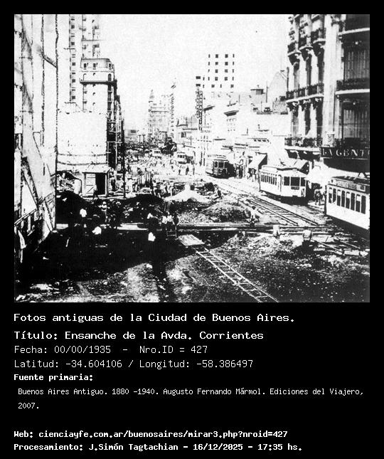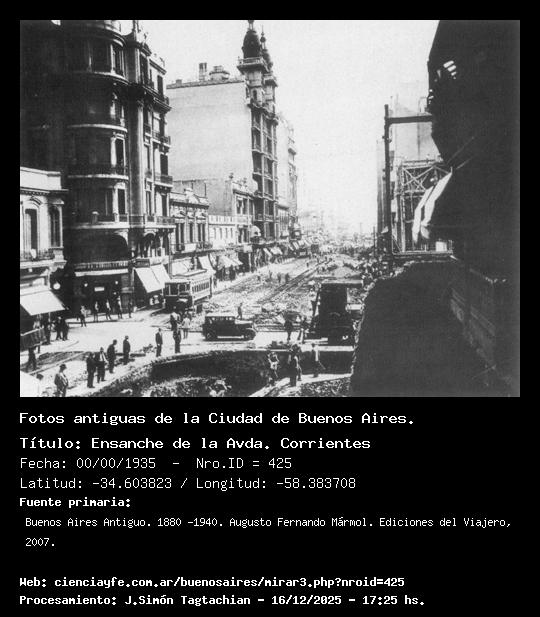 Ensanche de la Avda. Corrientes - 00/00/1935 - [425] - Orden: 42 Ensanche de la Calle Corrientes en el cruce con Libertad. El edificio grande con las dos torres que se ve sobre la izquierda todavía existe (año 2012).