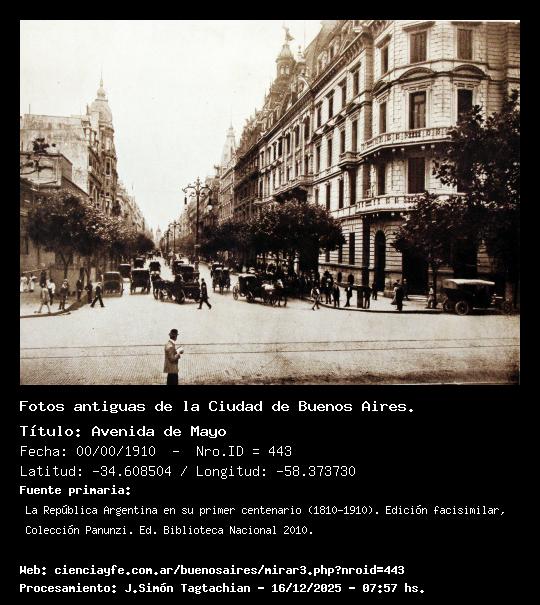 Avenida de Mayo - 00/00/1910 - [443] - Orden: 4 La Avenida de Mayo con las farolas en el medio.