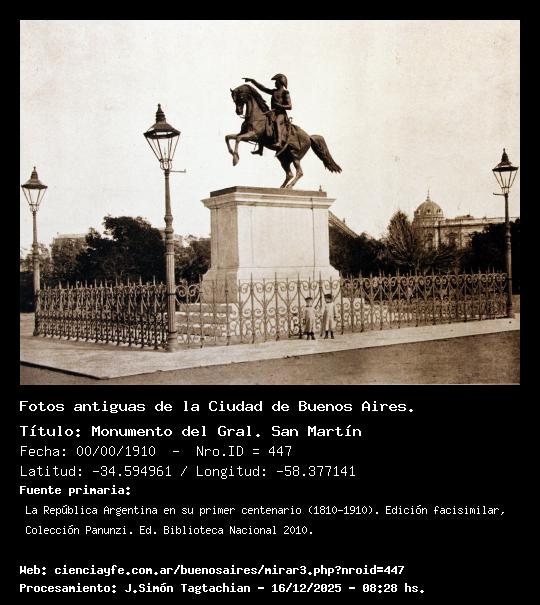 Monumento del Gral. San Martín - 00/00/1910 - [447] - Orden: 8 Monumento al Gral. San Martín. En la reja se ven dos niños. Prestar atención a las farolas.