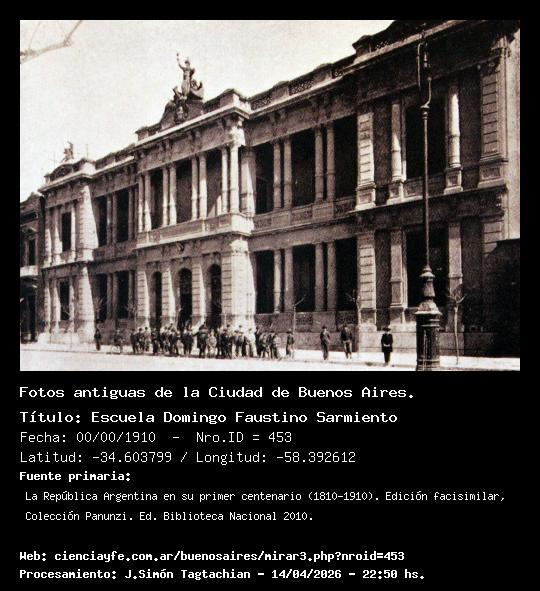 Escuela Domingo Faustino Sarmiento - 00/00/1910 - [453] - Orden: 14 La Escuela se encuentra sobre la calle Callao.