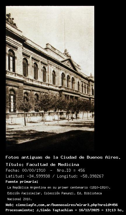 Facultad de Medicina - 00/00/1910 - [456] - Orden: 17 Fue demolido. Ahora se encuentra allí un moderno edificio, extensión de la Facultad de Ciencias Económicas, UBA.