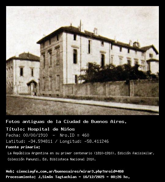 Hospital de Niños - 00/00/1910 - [460] - Orden: 21 No estoy seguro cuál edificio es el que aparece en la foto, pero es el ubicado en calle Gallo y Paraguay.