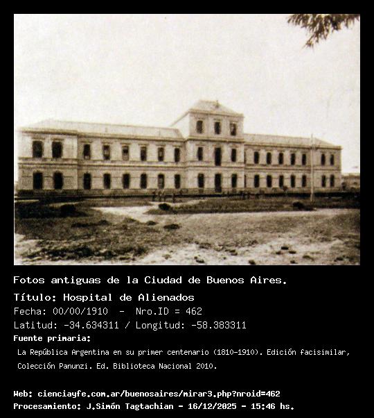 Hospital de Alienados - 00/00/1910 - [462] - Orden: 23 Falta confirmar si el edificio es parte del actual hospital Borda o fue demolido.