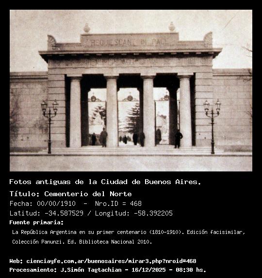 Cementerio de la Chacarita - 00/00/1910 - [469] - Orden: 30 Entrada principal original.