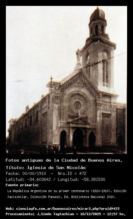 Iglesia de San Nicolás - 00/00/1910 - [472] - Orden: 33 Estaba ubicada donde hoy está el Obelisco. Fue demolida para construirlo.