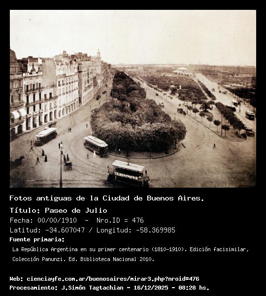 Paseo de Julio - 00/00/1910 - [476] - Orden: 37 Foto desde la Casa Rosada. Hoy en este lugar se encuentra el Monumento a Garay.