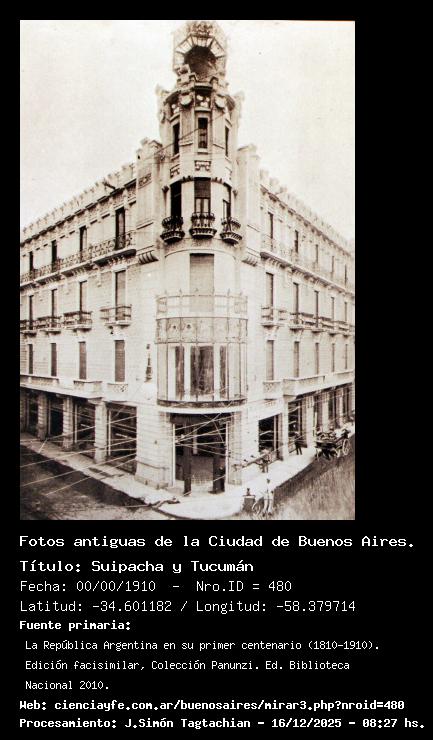 Suipacha y Tucumán - 00/00/1910 - [480] - Orden: 41 Propiedad del Dr. C. Pereda. Arq: J. García. Constructores: Locatelli & Tosi.