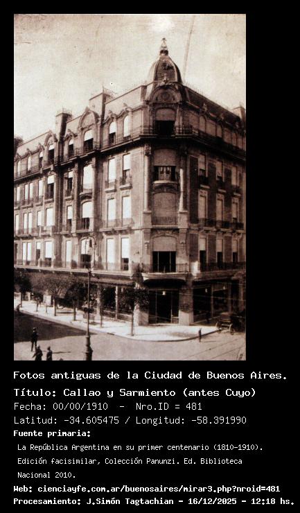 Callao y Sarmiento (antes Cuyo) - 00/00/1910 - [481] - Orden: 42 Callao y Sarmiento (antes Cuyo). El edificio perdió hoy su cúpula. Propiedad de la Sra Antonia Mayo de Avalle. Arq: G. Bornhauser. Consts Ceci Hnos. Construcción Metálica Boniscontro, Bevilacqua & Cía.