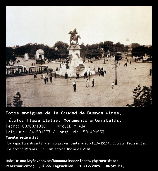 Plaza Italia. Monumento a Garibaldi. - 00/00/1910 - [484] - Orden: 45
