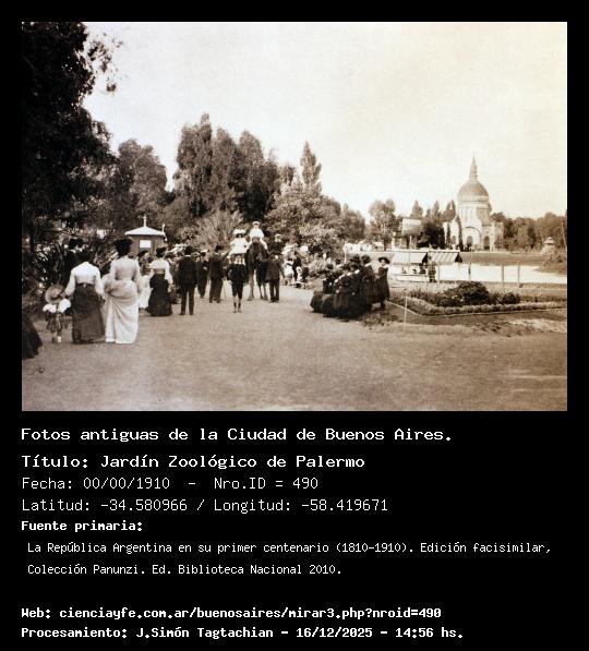 Jardín Zoológico de Palermo - 00/00/1910 - [490] - Orden: 51 Entrada principal del zoológico.