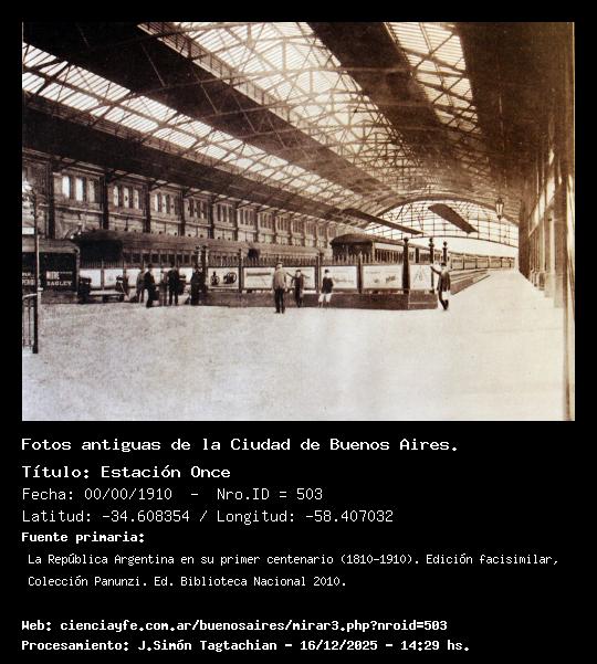 Estación Once - 00/00/1910 - [503] - Orden: 64 Interior de la Estación Once de Trenes.
