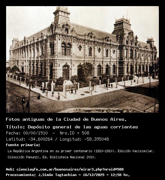 Depósito general de las aguas corrientes - 00/00/1910 - [508] - Orden: 69 Palacio de aguas sanitarias de la calle Córdoba.