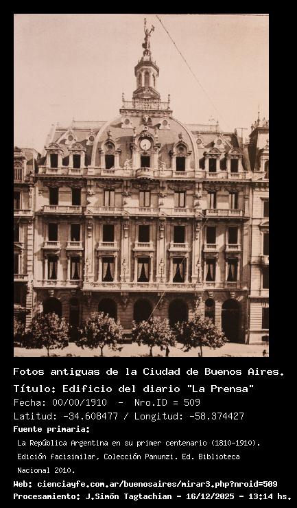 Edificio del diario "La Prensa" - 00/00/1910 - [509] - Orden: 70 Edificio del diario "La Prensa", hoy Casa de la Cultura del Gobierno de la Ciudad de Buenos Aires.