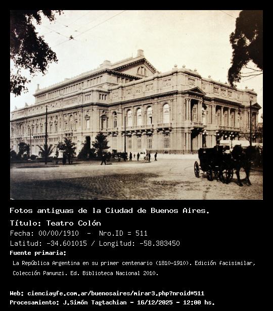 Teatro Colón - 00/00/1910 - [511] - Orden: 72 El Teatro Colón fue inaugurado el 25 de mayo de 1908. Proyectado por el Ing. Tamburini, modificado por el Arq. V. Meano. Constructores Armellini y Pellizzari. Carpintería hecha por los talleres de Pini y Barindelli.