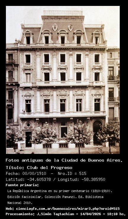 Club del Progreso - 00/00/1910 - [515] - Orden: 76 Club del Progreso. Este edificio está en pie y funciona allí un restaurant abierto al público en general.