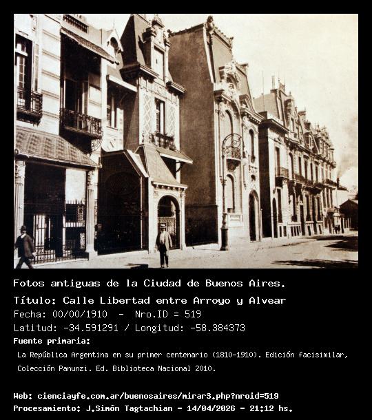 Calle Libertad entre Arroyo y Alvear - 00/00/1910 - [519] - Orden: 80 La calle más linda del Buenos Aires con casas de Arquitectos famosos.