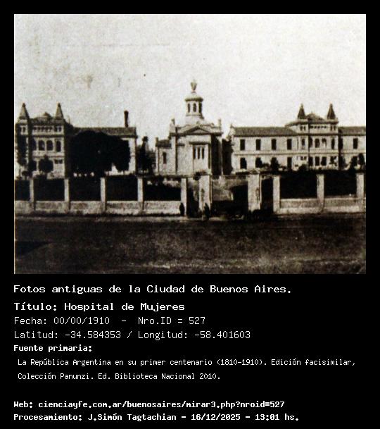 Hospital de Mujeres - 00/00/1910 - [527] - Orden: 88 Hospital de Mujeres, hoy llamado Hospital Rivadavia. En el medio se ve la Capilla, que todavía existe.