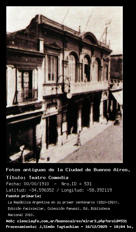 Teatro Comedia - 00/00/1910 - [531] - Orden: 91 Rodríguez Peña 1062. Hoy se muestra otro edificio. Verificar si es el mismo solar.