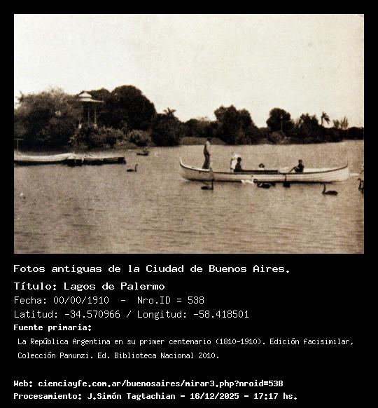 Lagos de Palermo - 00/00/1910 - [537] - Orden: 97 Creo que el techo no es el mismo al actual y habría que verificar si es la misma glorieta emplazada en el mismo lugar.
