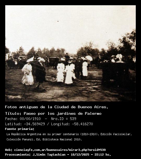 Paseo por los jardines de Palermo - 00/00/1910 - [539] - Orden: 99 Ubicación aproximada.