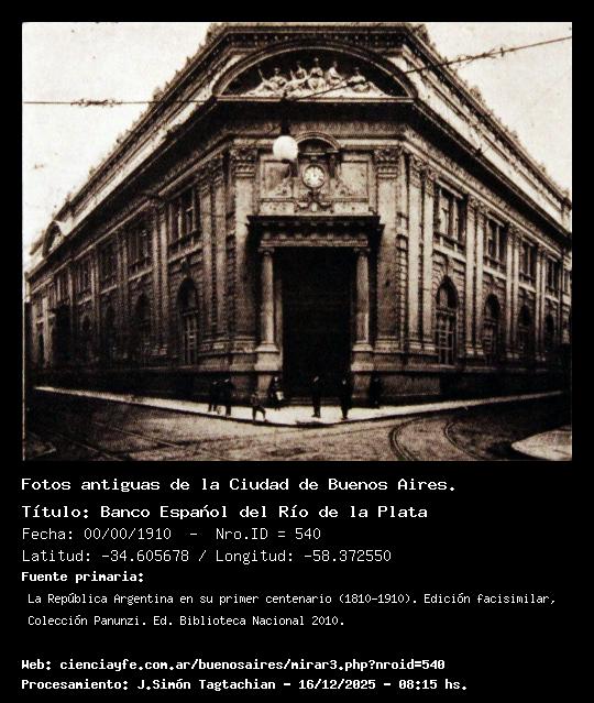 Banco Español del Río de la Plata - 00/00/1910 - [540] - Orden: 100 Fue demolido. Hoy se yergue la torre del Banco de Galicia hecha durante la época del Corralito financiero.
