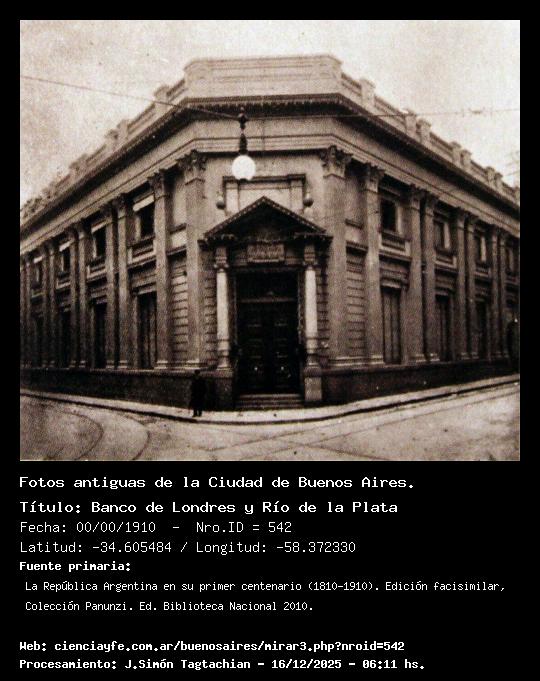 Banco de Londres y Río de la Plata - 00/00/1910 - [542] - Orden: 102 Calles Reconquista y Perón (ex-Cangallo, ex-Piedad).