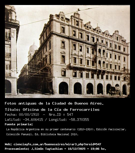 Oficina de la Cía de Ferrocarriles - 00/00/1910 - [547] - Orden: 107 Leandro Alem y Bartolomé Mitre.