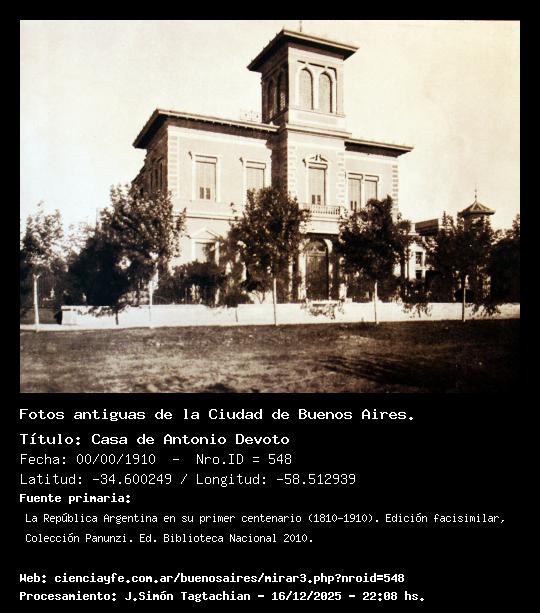Casa de Antonio Devoto - 00/00/1910 - [548] - Orden: 108 Hoy Escuela Antonio Devoto.