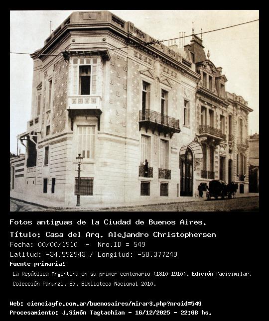 Casa del Arq. Alejandro Christophersen - 00/00/1910 - [549] - Orden: 109 Juncal 712. Casa propia del arquitecto Alejandro Christophersen(1903).