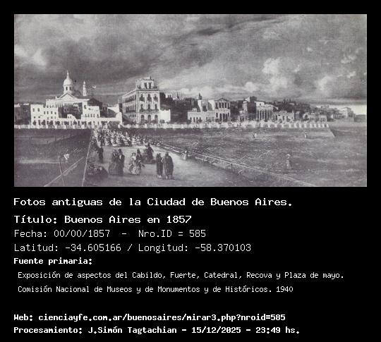 Buenos Aires en 1834 - 00/00/1834 - [582] - Orden: 11 Oleo de R. Adams. Sobre la izquierda se ve el Fuerte, sobre la derecha se ve la Catedral y la Iglesia de la Merced.